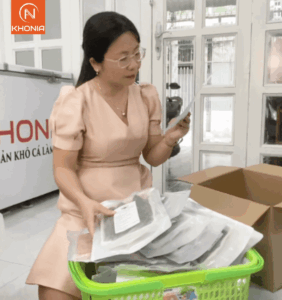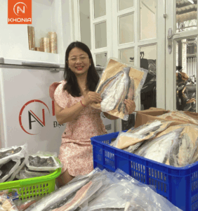 KHONIA gửi khô cá 3 nắng cho chị Hồng đi nước ngoài ăn tết.