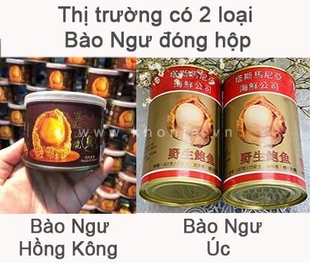 Còn nếu bà mua bào ngư đóng hộp thì hiện tại có hai loại là bào ngư Úc và bào ngư Hồng Kông thôi.