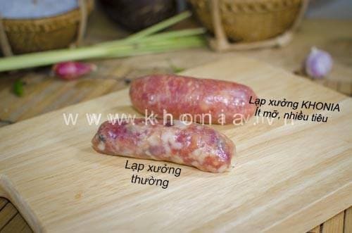 Mình và đội ngũ KHONIA đã điều chỉnh công thúc gia vị. Giảm lượng đường lại, giảm tỷ lệ mỡ xuống, dùng mỡ lưng chứ không dùng mỡ bụng. Thêm nhiều tiêu hạt đạp dập và hạt tiêu còn nguyên hạt vào.