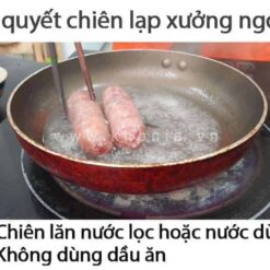 Bí quyết để chiên lạp xưởng ngon là anh chị chiên lăn nước lọc hoặc nước dừa. Anh chị đừng chiên bằng dầu ăn cây lạp xưởng sẽ béo ăn không ngon.
