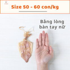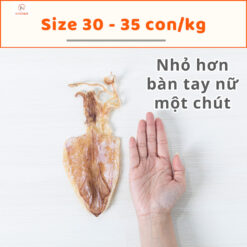 Size 30-35 con/kg: nhỏ hơn bàn tay nữ một chút, thịt không dày bằng 3 size mực lớn