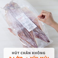 Cả 5 size mực tại KHONIA đều được hút chân không kín mùi. Có ngày sản xuất và nhãn song ngữ Viêt Anh, thông tin rõ ràng, mang đi nước ngoài thông quan dễ